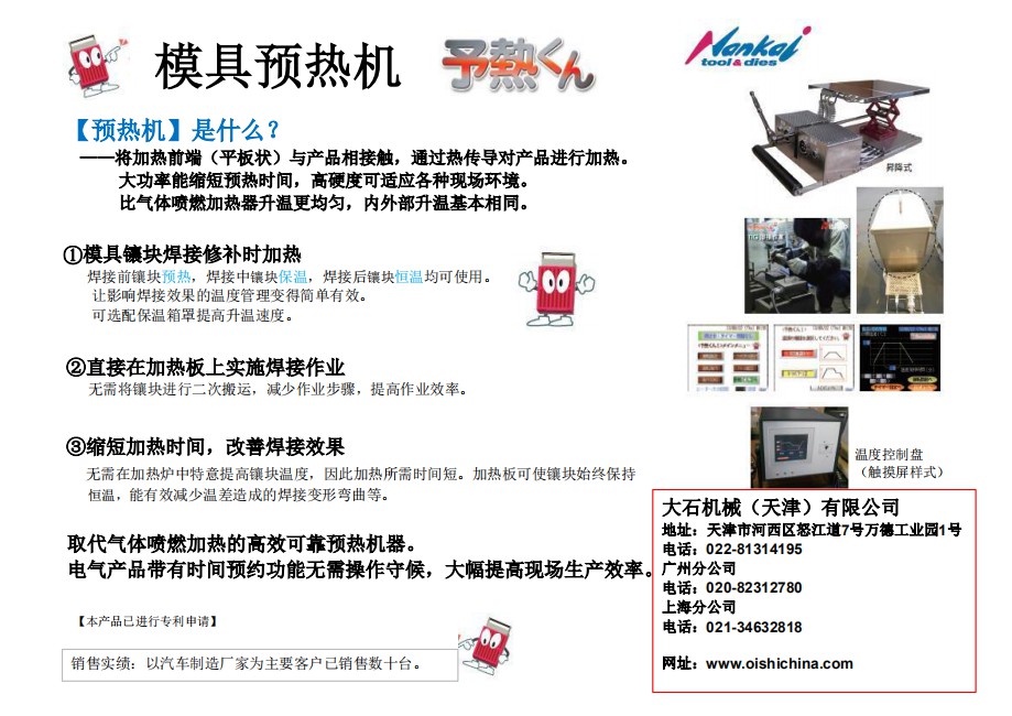 郵箱:kent@oishi-machine.com大石機(jī)械(天津)有限公司是日本大石機(jī)械株式會(huì)社在中國(guó)的全資子公司。公司成立于2004年7月,并于2007年在廣州、上海、武漢成立分公司。